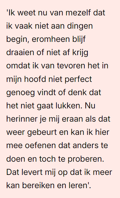 Misschien is ‘(leren-)leren’ lastig omdat je hier eigenlijk nooit echt mee geoefend hebt. Meestal kon je vaak na goed observeren alles in 1 keer en ben je mogelijk eraan gewend geraakt ‘je leerkuil’ te ontvluchten. Wellicht wil je eerst het nut van dingen weten voordat je kan aanhaken of wil je het alleen op ‘jouw autonome manier’ doen. Of wil je alweer iets nieuws beginnen zonder het vorige af te maken.